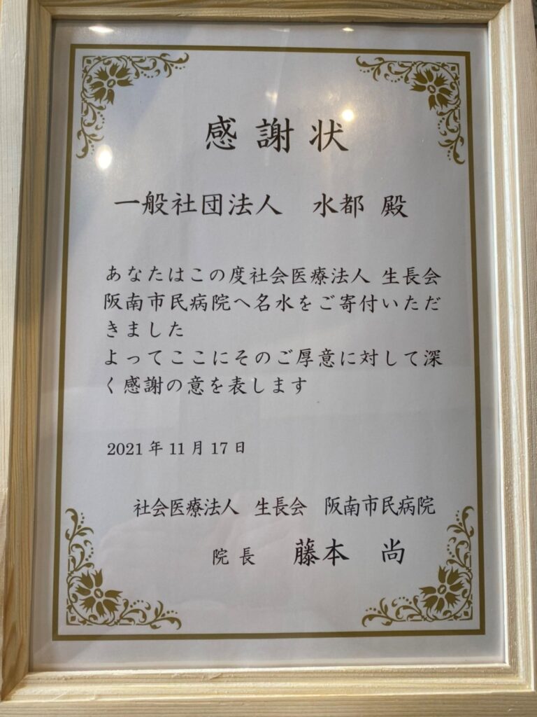 そうして令和3年3月から下記の病院へ毎月100本の水を送付することにした。それを聞いた春馬くんのファンの有志の方々から、送料を負担してもらった。