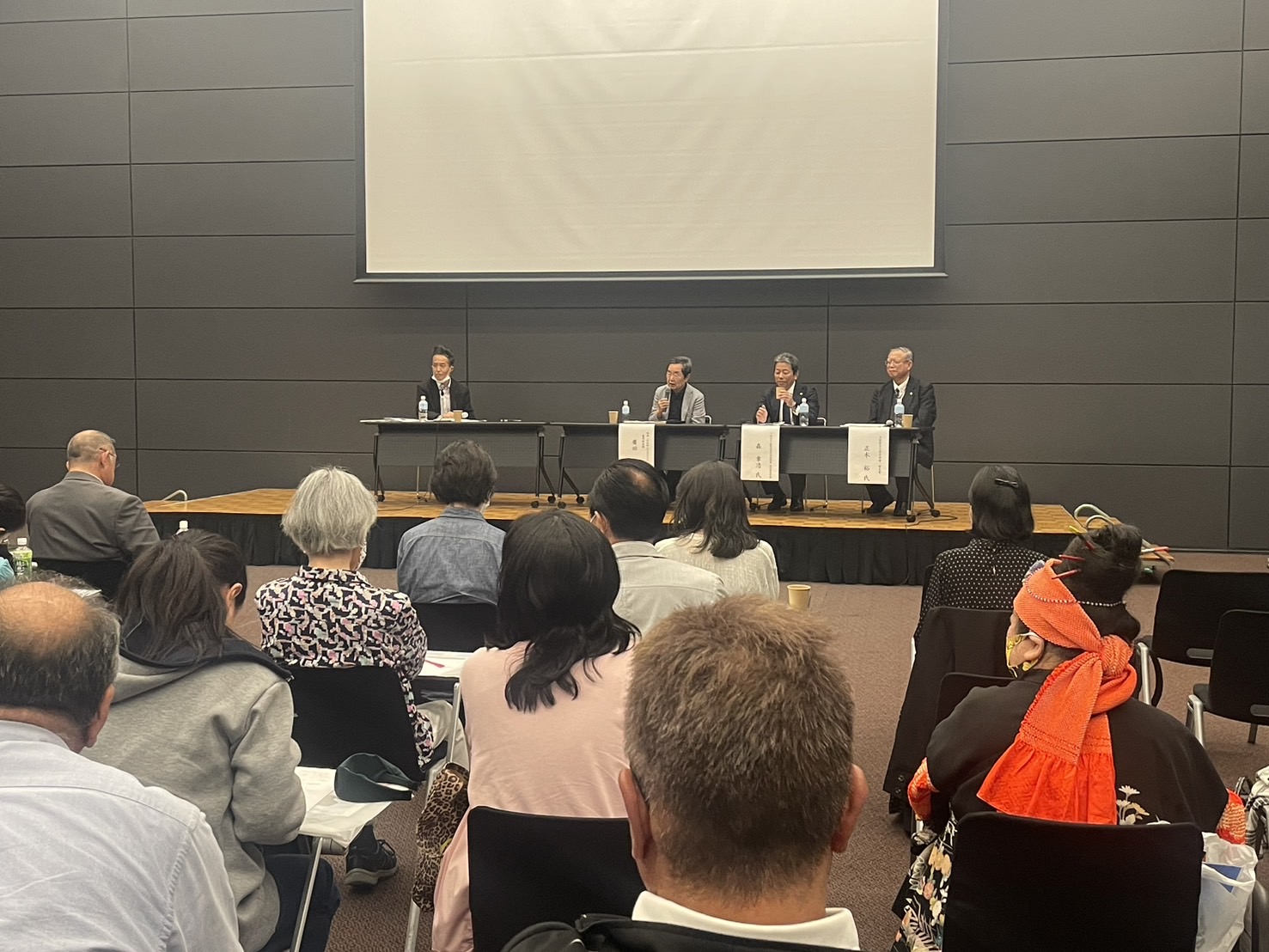 上映後のトークセッションでは、開催中の万博のテーマ「いのち輝く」をテーマに上記2作品の製作総指揮を務めた廣田稔氏、前田原本町長で(一社)みらい政策研究所代表理事の森章浩氏、大阪大学元理事で歴史家の正木裕氏が、会場を交えて思いを論じあった。